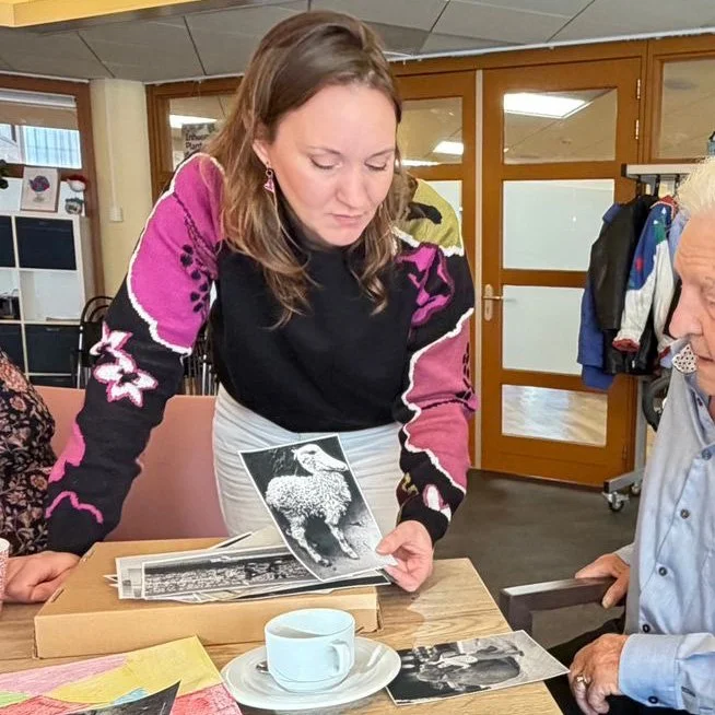 Sinds 2025 verzorg ik creatieve workshops voor ouderen binnen dagbesteding- en zorgorganisaties waarin herinneringen en creativiteit samenkomen. Vanuit eigen ervaring weet ik hoe belangrijk kunst en creativiteit zijn voor het welzijn van iedereen die met zorg te maken krijgt. Ik wil hier graag aan bijdragen en zorgen voor verbinding, plezier en zingeving.